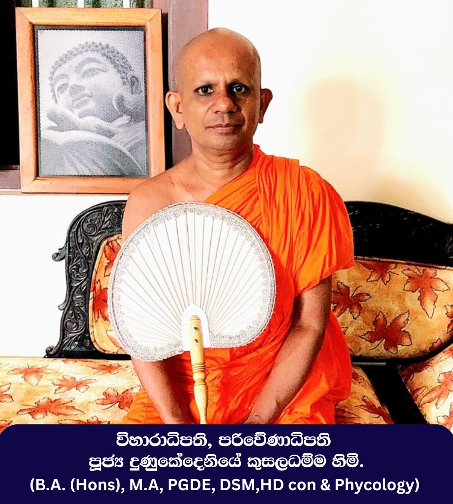 Ven. Dunukedeniye Kusaladhamma Thero (B.A. Hons, MA, PGDE, DSM, HD Con & Phycology).